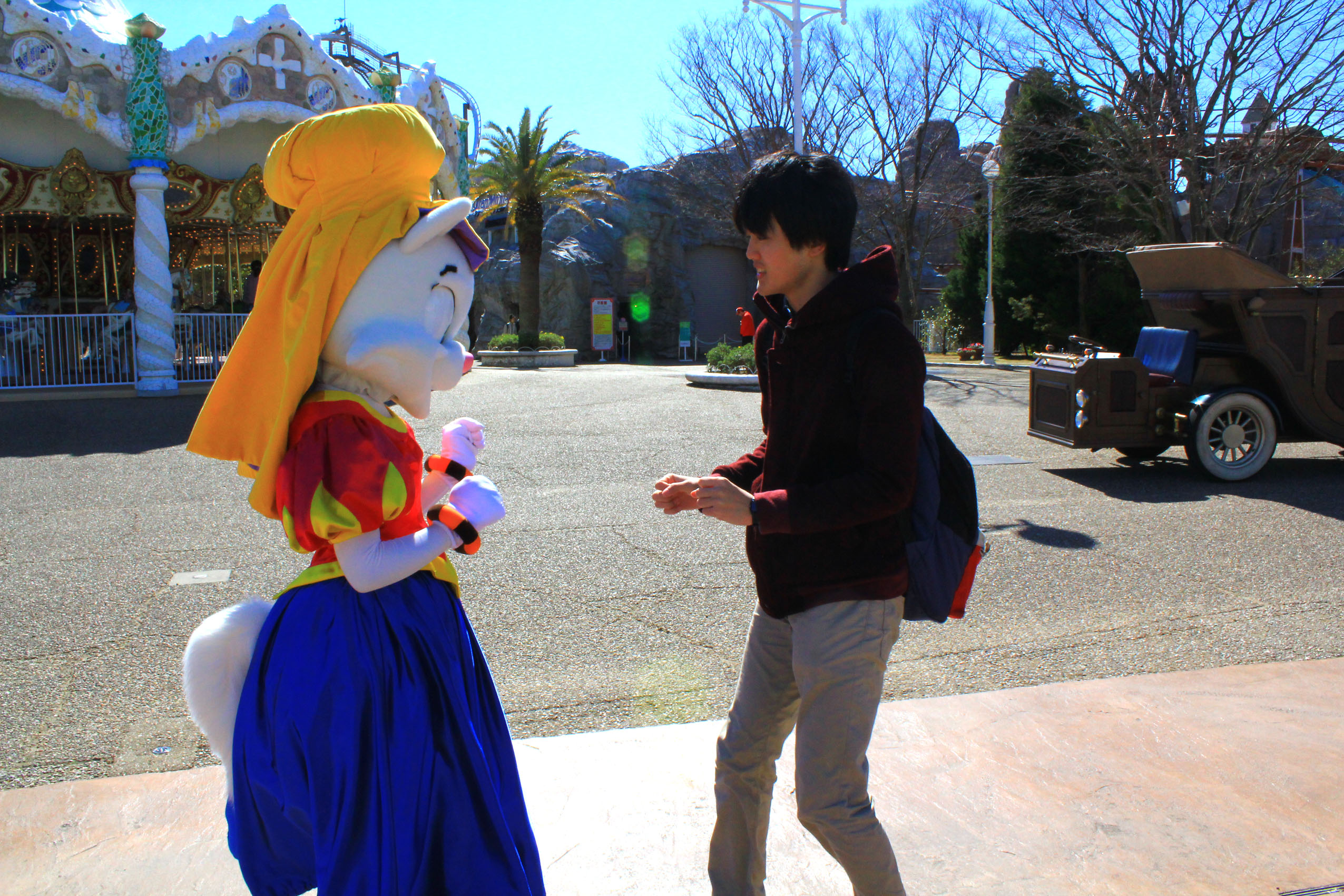 スペイン村のアイドル、ダルちゃんと会えて喜ぶ部員